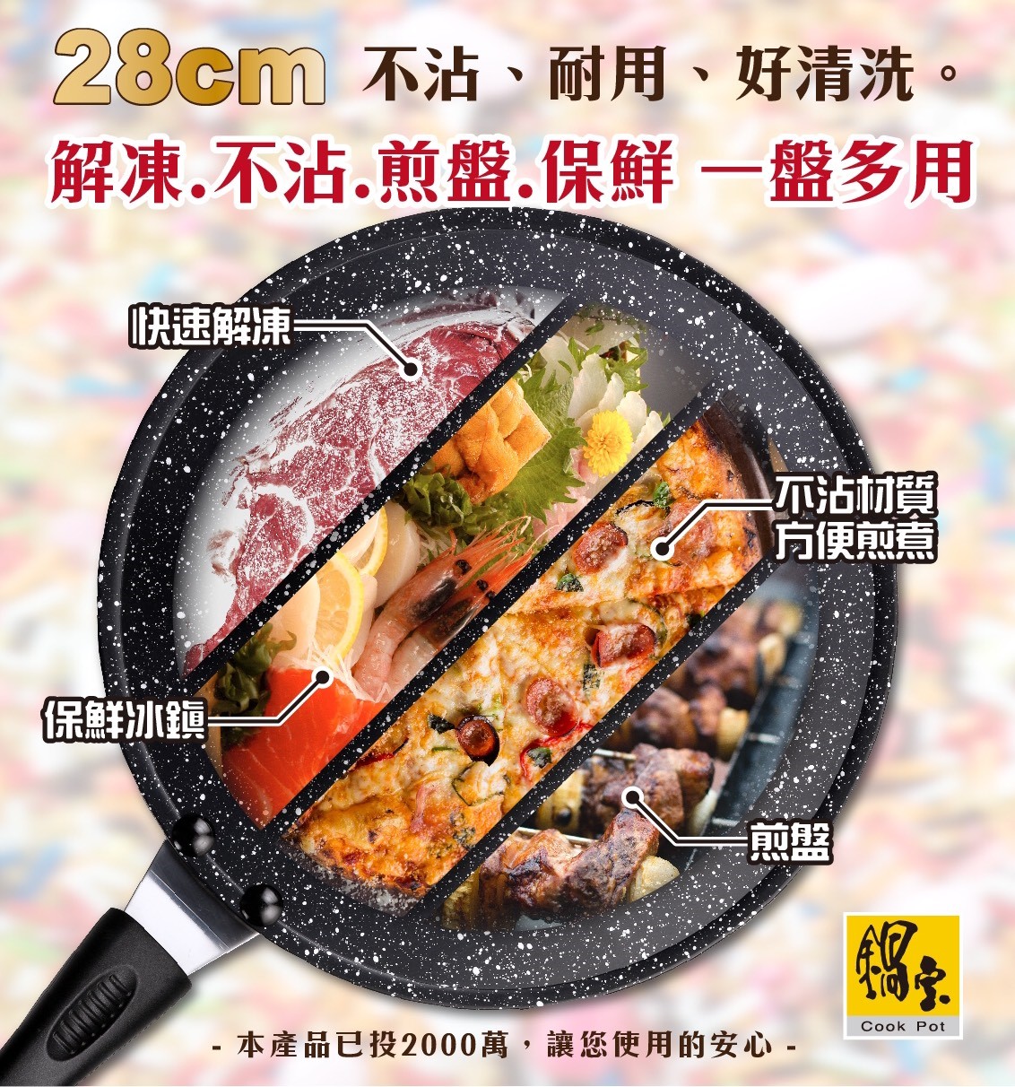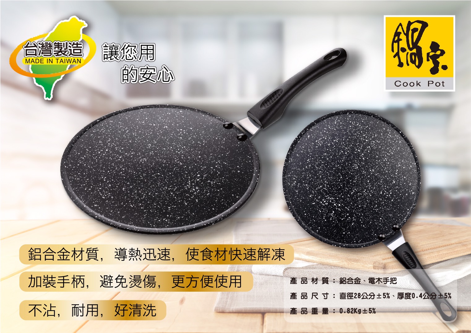28cm鍋寶麥飯石解凍煎盤