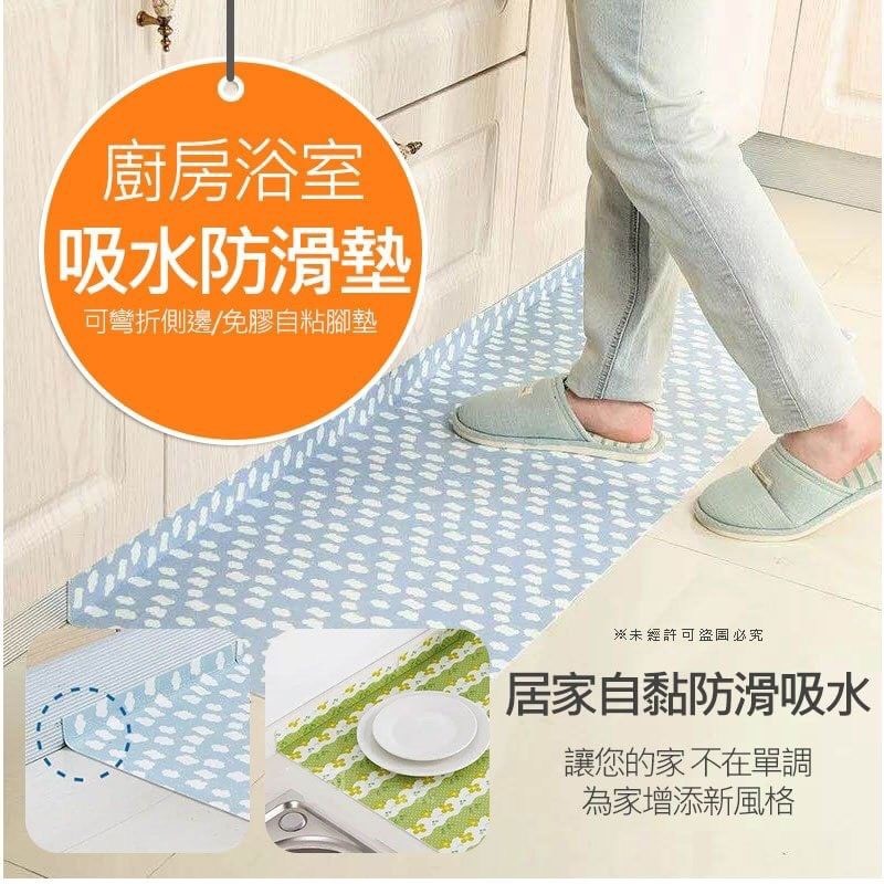 台灣零批:50元 大陸直送:一箱100個4500元 廚房浴室吸水多用防滑墊 尺寸:50x70cm 不挑色 ‧自由剪裁,使用方便 ‧手感柔軟,美化家居 ‧優良材質,細膩觸感,超吸水