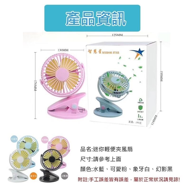 批發:135元、一箱60台 迷你輕便夾風扇 穩穩地四角防滑,穩穩站著吹風,不怕歪斜~ 只要輕輕一按,風力可調大小~ 加粗密網罩,防止手指卡進去,粉安心~ 優質材料製造,不怕變形,好耐用! 夾著、站著都可以使用~ 讀書、工作、外出,通通都可以用! 讓你涼阿涼~吹散暑氣,神清氣爽~
