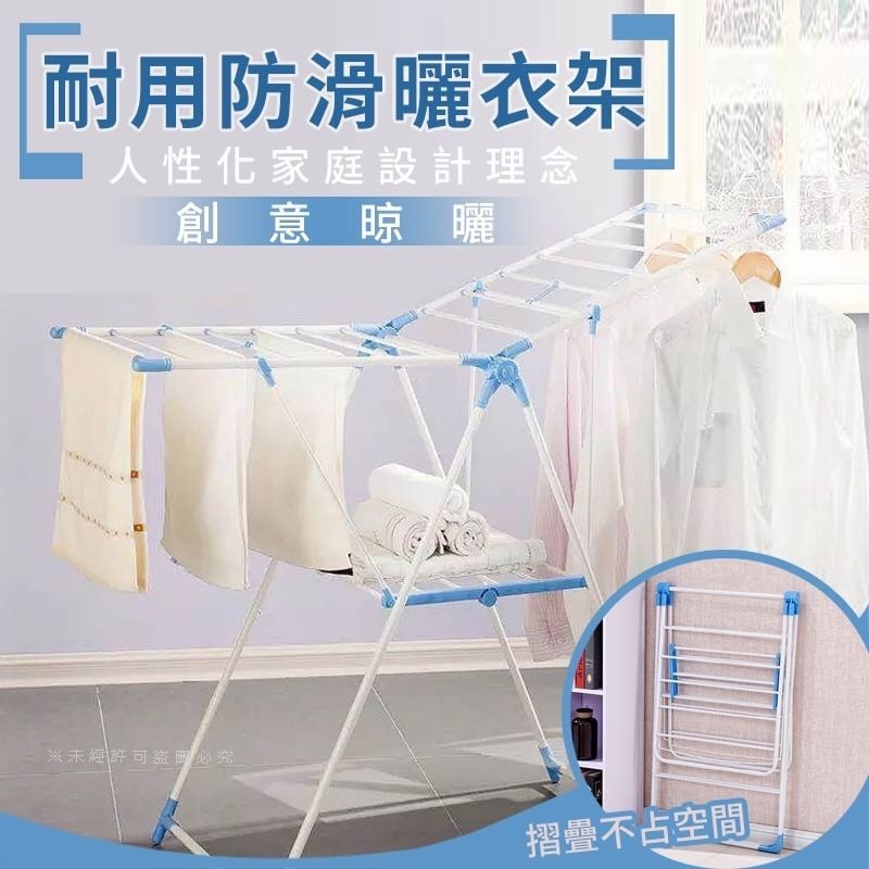 耐用防滑曬衣架 台灣零批:400元 大陸免運:一箱8個3000元 多層次曬衣空間讓掛依空間更升級 他的可調節翼型設計可自由調整高度 不怕衣物太長碰觸到地板 堅固的設計更是能承載達20KG 不用的時候可以摺疊收納不占空間! 如此便捷的曬衣架堪稱居家的好幫手