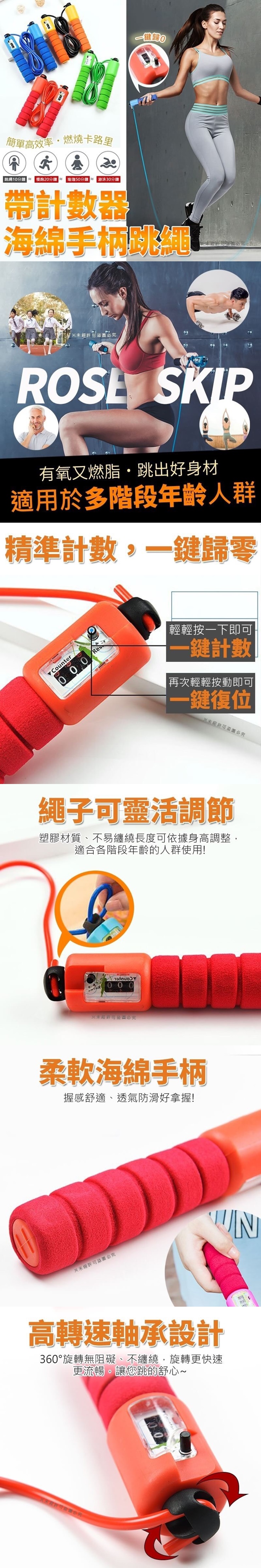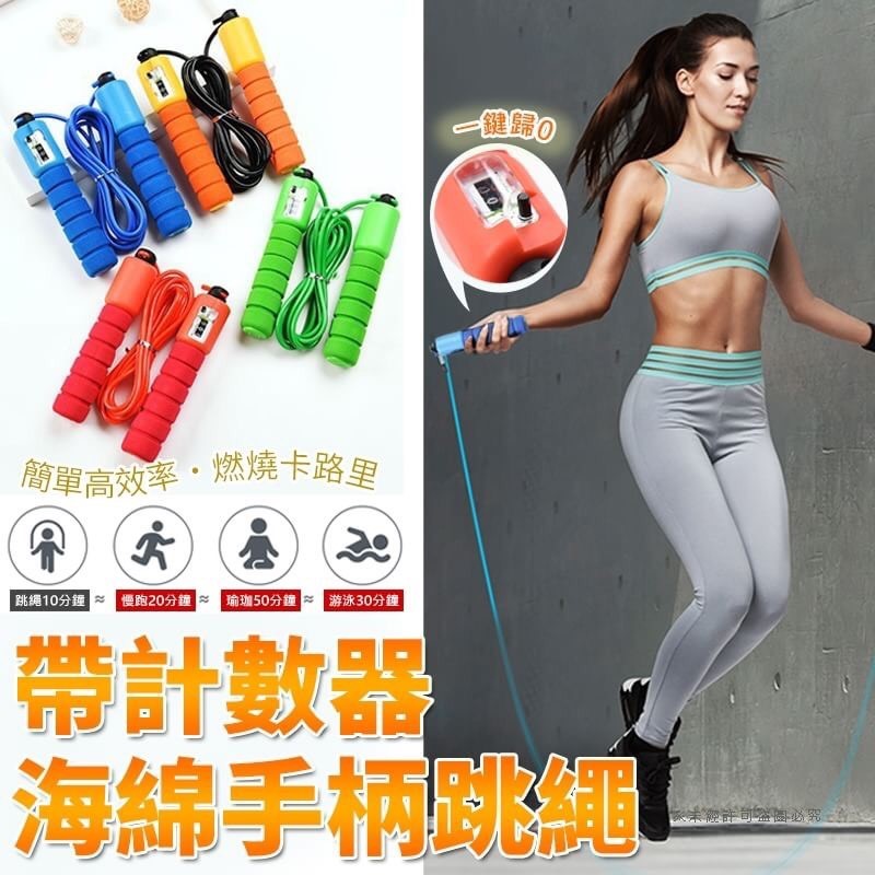 帶計數器海綿手柄跳繩 台灣零批:20元 /條 大陸免運:一箱200條3600元(混裝) 燃燒你的脂肪就從最簡單的跳繩開始!! 簡單高效率,燃燒卡路里~ 一次跳繩10分鐘相當於慢跑20分鐘、 瑜珈50分鐘、游泳30分鐘!! 有氧又燃脂!跳出屬於你的好身材~ 一鍵歸0、復位~簡單好用! 可調整繩長,依據你的身高再調整~ 高轉速軸承繩子不再卡卡~ 適合各年齡成的人群使用唷~ 一條即可全家使用~讚讚讚!!!