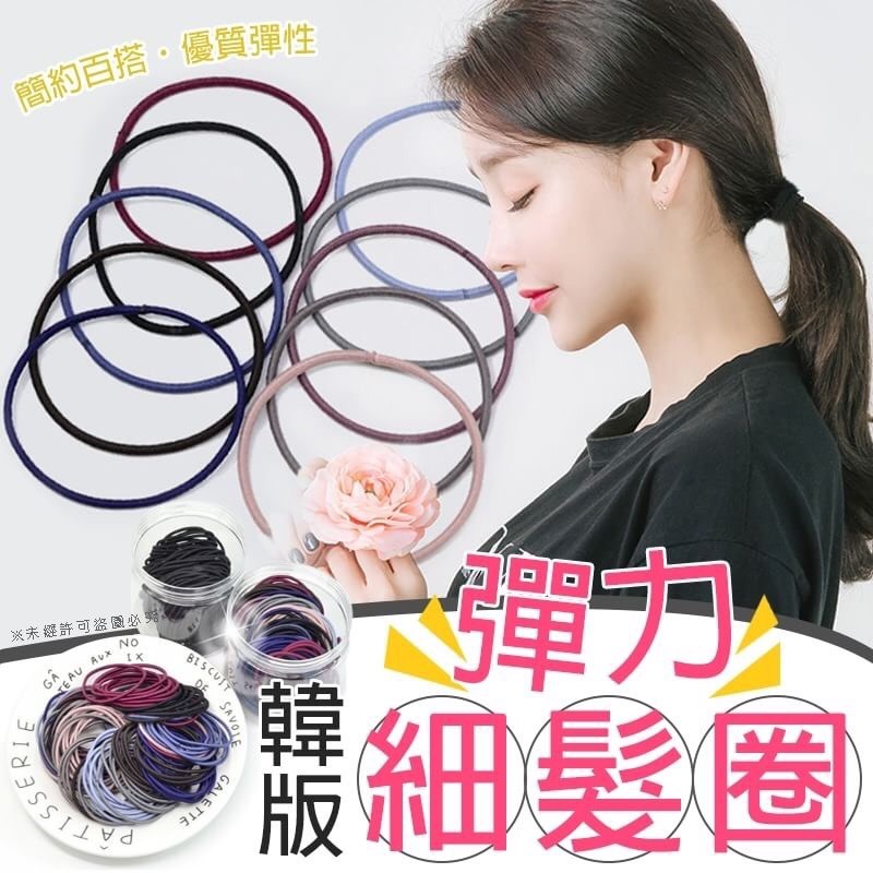 韓版彈力細髮圈100入裝 台灣零批:35元 簡約細髮圈讓妳百搭百用各種造型! 高彈力拉開可達20cm!! 根據自己的需求搭配使用~ 一盒多條髮圈怎麼用都好划算~ 盒裝設計讓妳帶到哪收到哪都方便唷