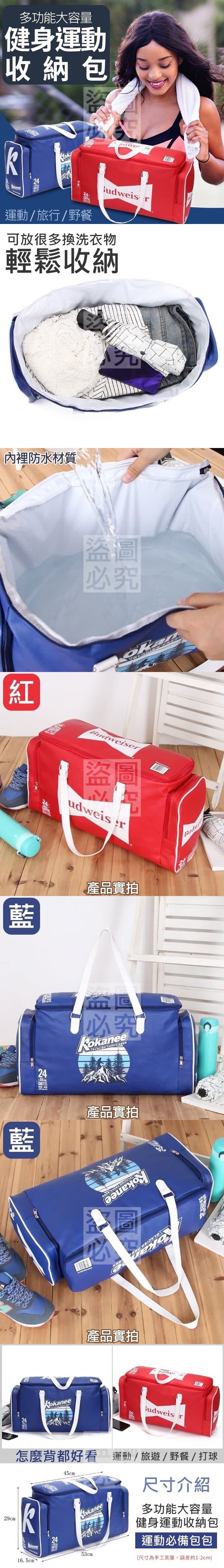 C外銷尾單 多功能大容量健身運動收納包 切貨:120元/個 、一箱50個 顔色:藍 、紅 遇缺色隨機 健身房好幫手!防水防潮加厚運動包 多格分離設計,可單獨收納運動流汗後溼透的衣 服和毛巾 大容量設計讓你帶齊生活用品、沐浴用品等,多 色任選,快擁有它吧~