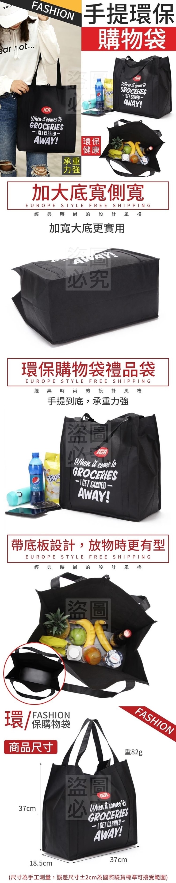 手提環保購物袋 台灣零批:25元/個 一箱100個 【商品尺寸】-37 x 18.5 x 37 cm (尺寸為手工測量,誤差尺寸±2cm為國際驗貨 標準可接受範圍) 經典時尚的手提環保購物袋,帶底板設計 更有型、承重力強、環保健康,加大底寬 側寬裝的更多、更加實用,讓您時尚有型 輕鬆購物
