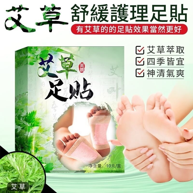 艾草舒緩護理足貼 台灣零批:40元 【商品材質】-艾草、竹醋等植物萃取物 【商品說明】- 足是人體的“第二心臟”,足還被譽為人 體健康美麗的“大總管”,是人體穴位和 經絡的集中區,睡前貼於腳底,護理您的 雙足,有艾草的足貼效果更好!