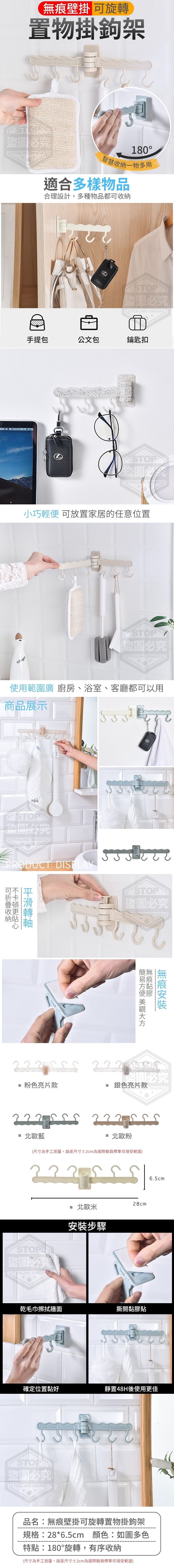 無痕壁掛可旋轉置物掛鉤架(2入/包) 批發:25元/包 【商品尺寸】28*6.5cm (尺寸為手工測量,誤差尺寸±2cm為國際驗貨標準可接受範圍) 【商品說明】- 180°旋轉、合理設計、多種物品都 可以有序收納,使用範圍廣,廚房 、浴室、客廳都可以用,小巧輕便 可放置家居的任意位置,無痕安裝 簡易方便、美觀大方~智慧收納一 物多用!