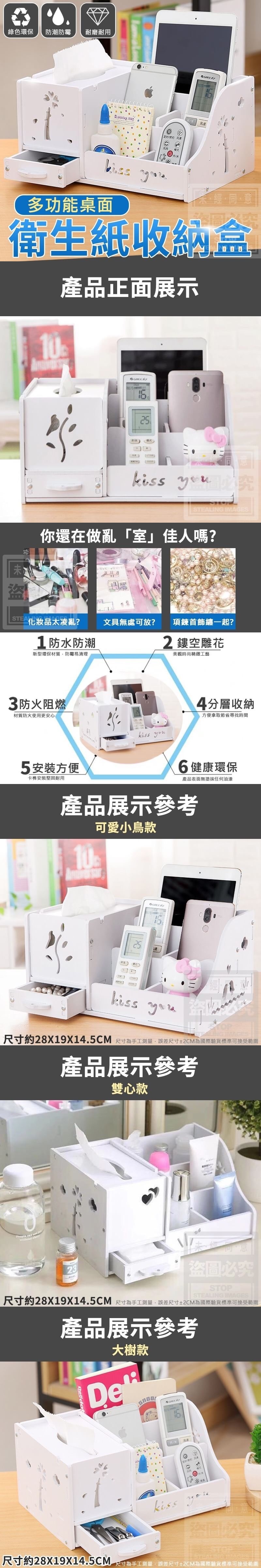 多功能桌面衛生紙收納盒 隨機 批發:80元 /個 【商品尺寸】- 28x19x14.5CM (尺寸為手工測量,誤差尺寸±2cm為國際驗貨標準可接受範圍) (附贈配件款式數量及顏色隨機出貨,圖片僅供參考,以實際收到為主。) 【商品說明】- 你還在做亂「室」佳人嗎? 小物凌亂它們需要一個家! 分隔收納讓你無需因為找不到而氣PUPU~ 環保阻燃材質使用安心~放在哪都可以 卡榫安裝so easy~堅固耐用保護物品