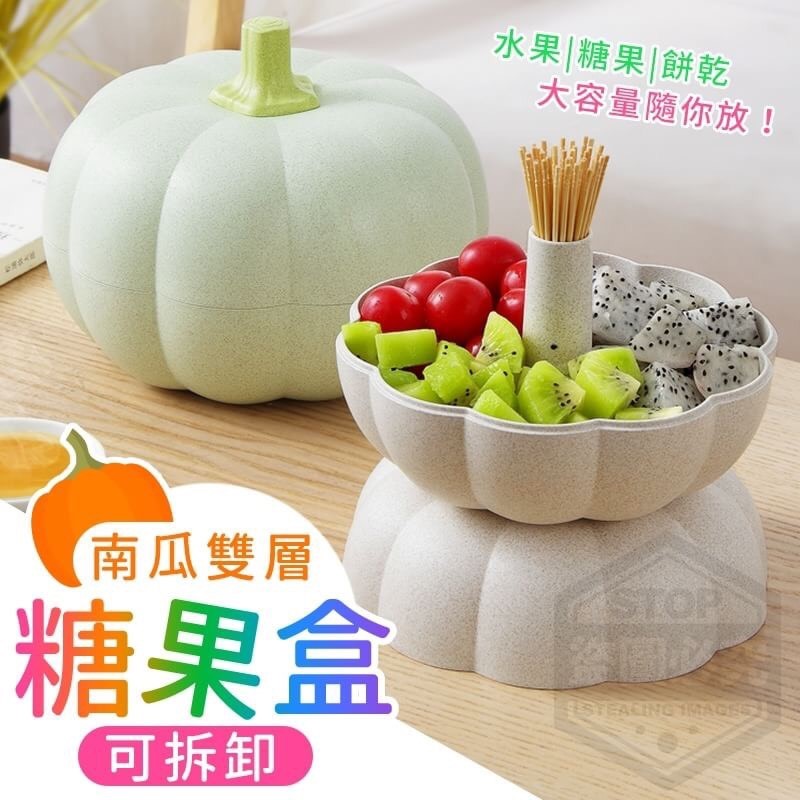 可拆卸南瓜雙層糖果盒 隨機 批發:100元 【商品材質】-麥纖維+PP 【商品尺寸】直徑20*高18cm (尺寸為手工測量,誤差尺寸±2cm為國際驗貨標準可接受範圍) 【商品說明】- 可拆卸設計,使用靈活,麥纖維+PP材 質,環保無毒,手提設計,方便開合疊 加,大容量雙層設計,裝的更多,水果 糖果餅乾等都可裝,還可放牙籤,讓你 輕鬆享受美食~