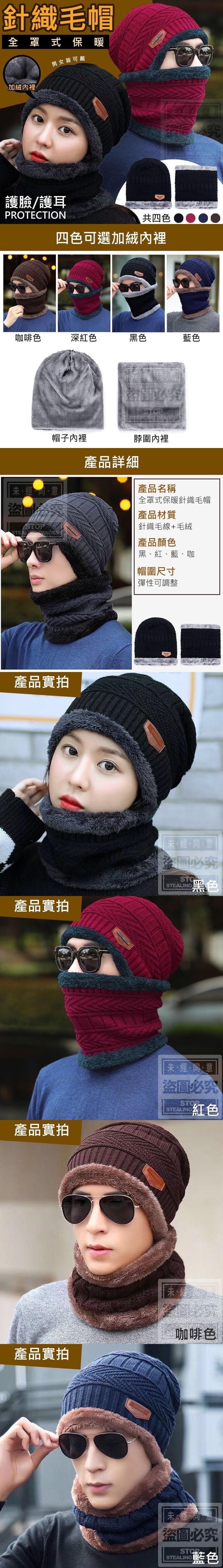 全罩式保暖針織毛帽 批發:47元 顏色:咖、紅、黑、藍 【商品尺寸】- 彈性尺寸 (尺寸為手工測量,誤差尺寸±2cm為國際驗貨標準可接受範圍) (附贈配件款式數量及顏色隨機出貨,圖片僅供參考,以實際收到為主。) 【商品顏色】-紅黑藍咖 【商品說明】- 冷冷的天就是要暖暖的包覆 全罩式包裹住頭部與頸部 內裡加絨舒適又暖呼呼der~ 針織材質就是超有質感 怎麼穿搭都好好看喔~ 男女皆可戴的好看又能保暖的小夥伴 這個冬天有它在就安心啦~