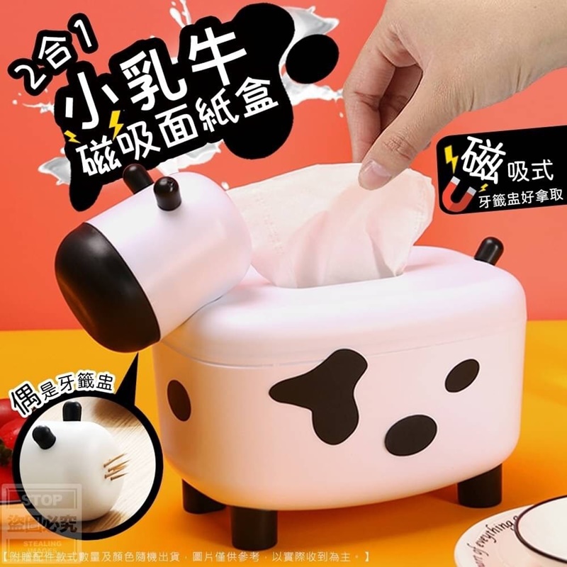 【商品尺寸】- 牙籤盅9X6CM 衛生紙盒18x13x12CM (尺寸為手工測量,誤差尺寸±2cm 為國際驗貨標準可接受範圍) (附贈配件款式數量及顏色隨機出貨, 圖片僅供參考,以實際收到為主。) 【商品說明】- SO CUTE小乳牛造型 擺在桌上就是超級吸睛 2合1用途:衛生紙盒和牙籤盅 磁吸式牙籤盅拿取更方便 圓潤造型手感超優 這麼可愛面紙盒怎能不買回家呢? 居家生活質感品味 就從日常生活小物著手