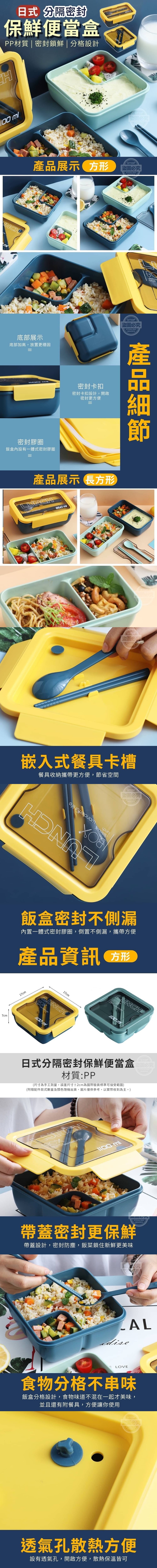 日式分隔可微波密封保鮮便當盒-正方款/無附餐具/隨機