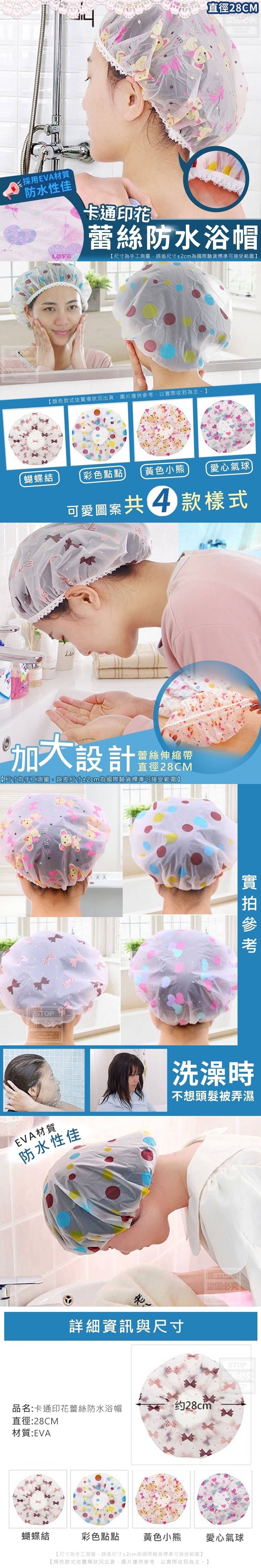 【商品尺寸】-直徑28CM (尺寸為手工測量,誤差尺寸±2cm 為國際驗貨標準可接受範圍) 【商品說明】- 早上洗臉怕弄濕頭髮嗎? 洗澡時今天不想洗頭怕弄濕頭髮? 做飯煮菜怕頭髮充滿油膩膩的味道? 只需戴上即可保護頭髮狀態 材質採用耐用EVA 加大設計直徑約28CM 伸縮蕾絲帶不勒頭!! 有效防水、沐浴做飯戴上它 不用擔心頭髮被打濕或者弄髒!!