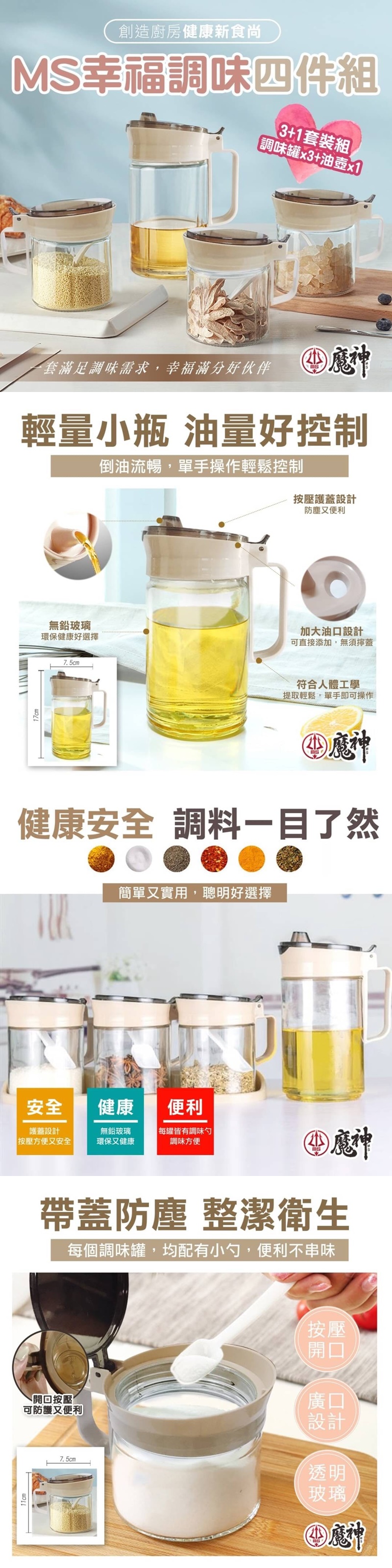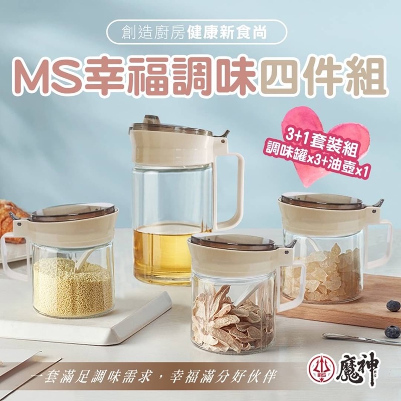 玻璃調味罐X3,油壺*1