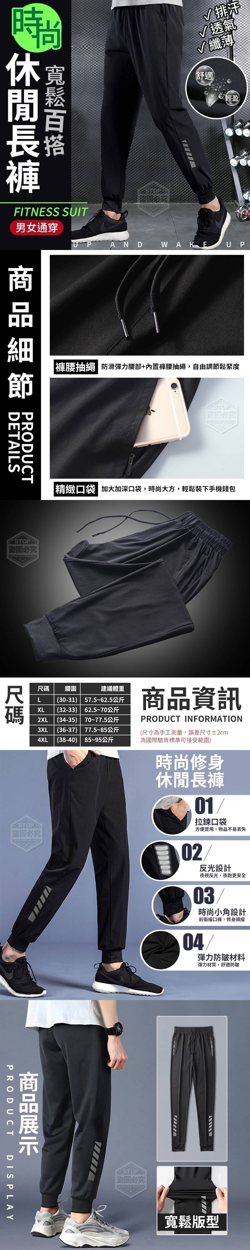 百搭反光設計籤縮口休閒長褲