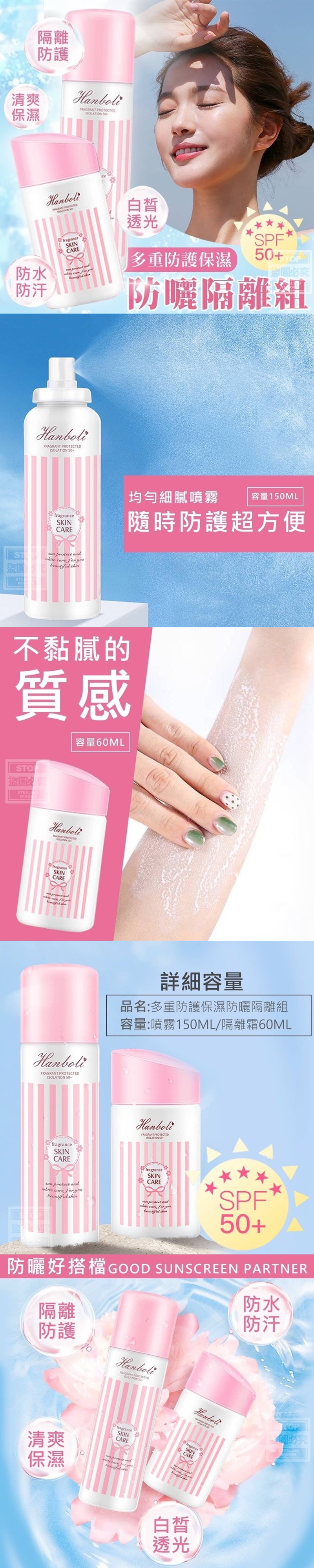【商品容量】- 噴霧150ML/隔離霜60ML 【商品說明】- 最近日頭赤炎炎 出去玩一不小心就曬得像木炭嗎? 防曬必備好搭檔:噴霧與隔離霜 均勻細密噴霧外出使用超方便! 不黏膩的隔離霜好推好使用! 防護再加倍=噴霧+霜狀 雙重使用更能依據自身狀況搭配 呵護寶貝嬌嫩肌膚 防水也防汗~ 清爽保濕還你白嫩嫩膚質唷~ 不怕毒辣辣的太陽 就怕防護做不到位