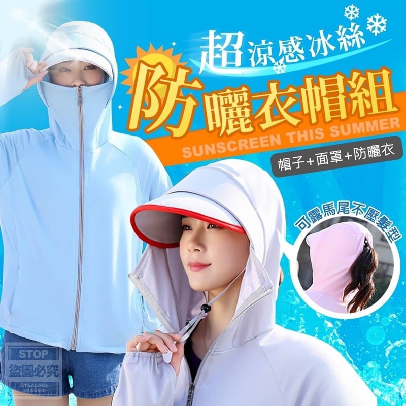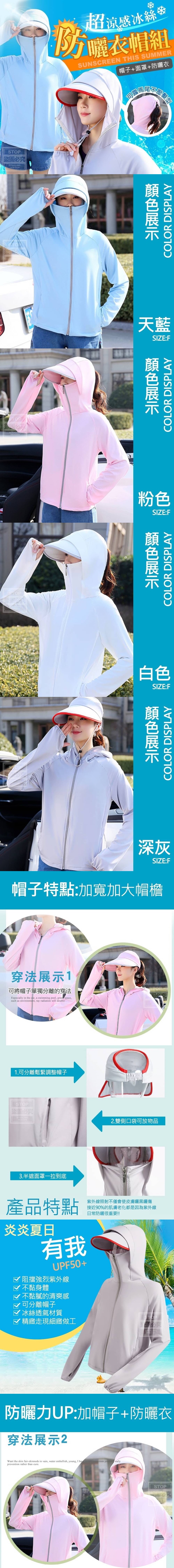 【商品尺寸】-F (附贈配件款式數量及顏色隨機出貨, 圖片僅供參考,以實際收到為主。) 【商品說明】- 紫外線照射不僅會使皮膚曬黑曬傷 接近90%的肌膚老化都是因為紫外線 要注意日常防曬喔!! 擦再多的防曬用品還是容易傷害肌膚 物理防曬系:冰絲防曬衣帽組 能阻擋強烈紫外線 輕薄透氣不黏身體 不黏膩的清爽感 帽子可依照自己的需求分離 冰絲透氣材質、精緻走現細緻做工 寶貝自己的肌膚就從平日穿衣防護做起唷~~