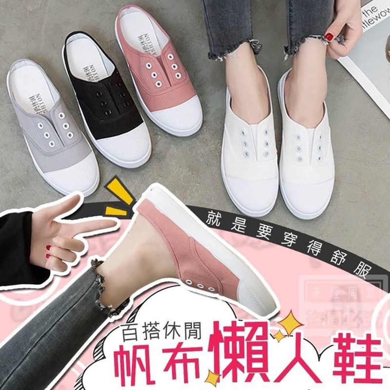 百搭帆布鞋+半拖設計=套上去即可穿出去~