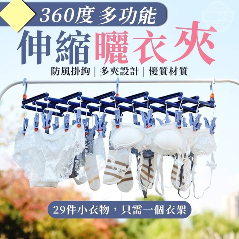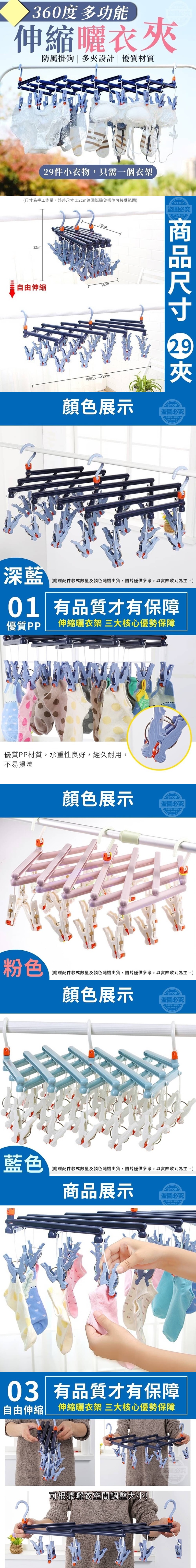 29個夾子能大量晾曬你的衣物可伸縮調節