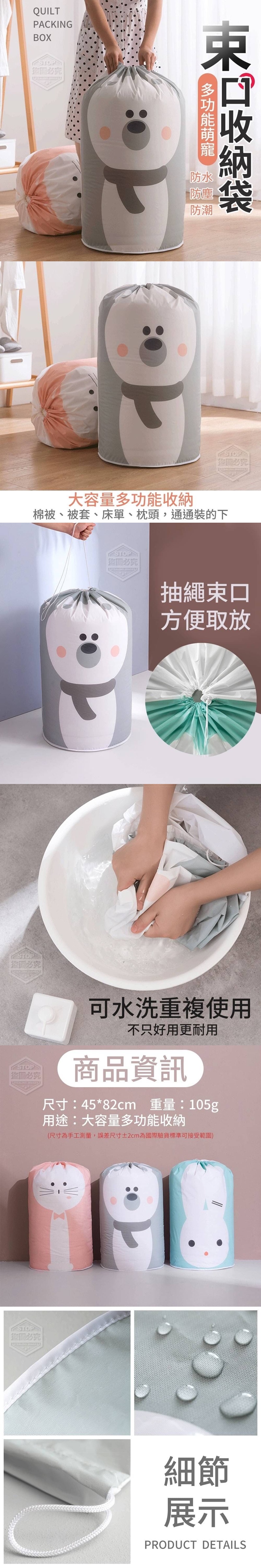 【商品尺寸】45*82cm (尺寸為手工測量,誤差尺寸±2cm 為國際驗貨標準可接受範圍) 【商品說明】- 防潮防水整齊收納不怕受潮 秒速收納 想裝什麼都很方便~ 大容量多功能收納防灰塵耐磨擦 結實耐用,收納日常大型棉被 或衣物、被套、 床單、枕頭、家居雜物等,都很合適。 可水洗重複使用、不只好用更耐用 抽繩束口,方便取放,方便你的生活! ★防水 ★防塵 ★防潮 趁著太陽大天氣好時 把衣服和棉被洗好曬乾 再通通放進束口收納袋裡收好 不再怕潮濕悶壞衣物囉
