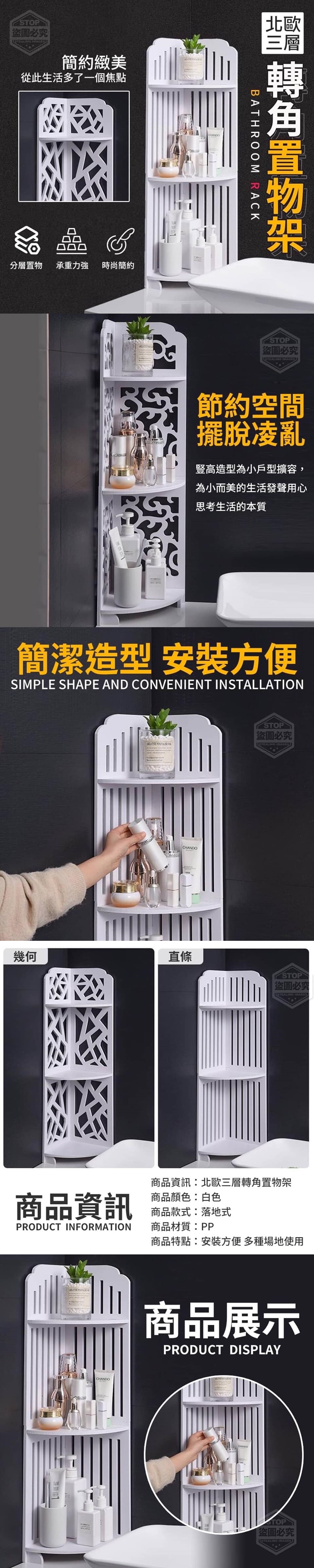 【商品材質】PP 【商品說明】- 家裡空間已經夠小了! 東西還多到、亂到受不了嗎? 擺脫凌亂,節省空間 專門為小戶型家庭設計! 1.分層置物 2.承重力強 3.時尚簡約 簡潔造型、安裝方便 適合放在牆面轉角,更好的利用空間 豎高造型,落地安裝 質感優良,表面平整,不刮傷物品 經久耐用,質輕強韌, 有了他居家收納通通OK~ 簡約緻美,從此生活多了一個焦點 適用多種場景,廚房收納,臥室收納, 衛浴收納 客廳收納,花架收納等,打造舒適、 高品質的生活。