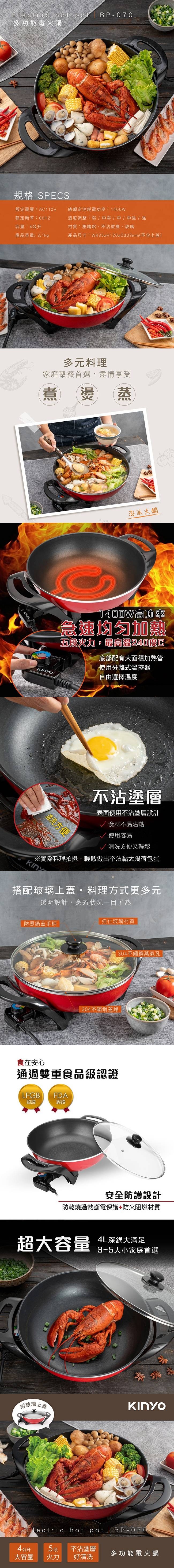 4公升深鍋3-5人小家庭聚餐首選。