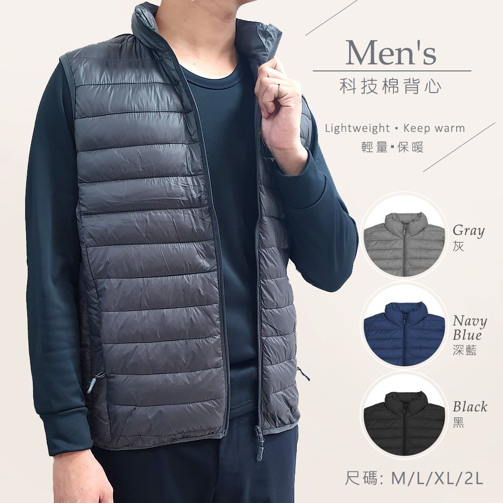 台灣監製 科技棉背心-男款/黑色/XL