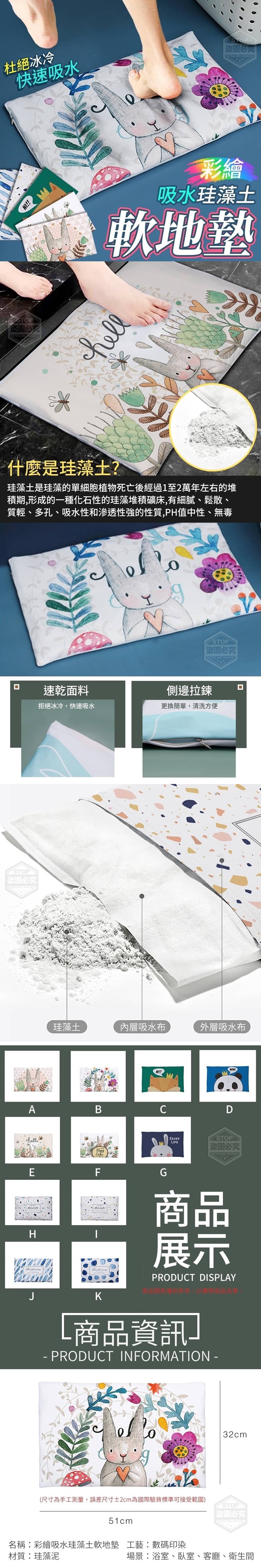 彩繪吸水珪藻土軟地墊