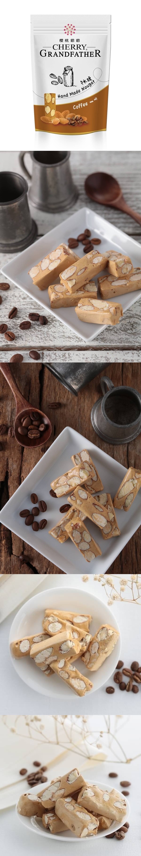 各批商務必公告各團主 嚴禁蝦皮!禁PC!嚴禁公開販售! 商家圖文僅授權,《封閉社團》銷售, 任何公開銷售,視為侵權行為, 勿以身試法。商家發現一律直接斷貨處理, 並追討法律責任! 喜歡喝咖啡的朋友一定要來試試看 這款咖啡牛軋糖, 櫻桃爺爺使用南美洲巴西的咖啡豆研磨, 配上紐西蘭純濃奶香與加州杏仁一同攪拌, 富有層次的口感,越嚼越香的好滋味。 牛軋糖界的時尚品味, 讓您在午後時光細細品味咖啡+牛奶的香濃純 保存期限9個月(最新生產製造)