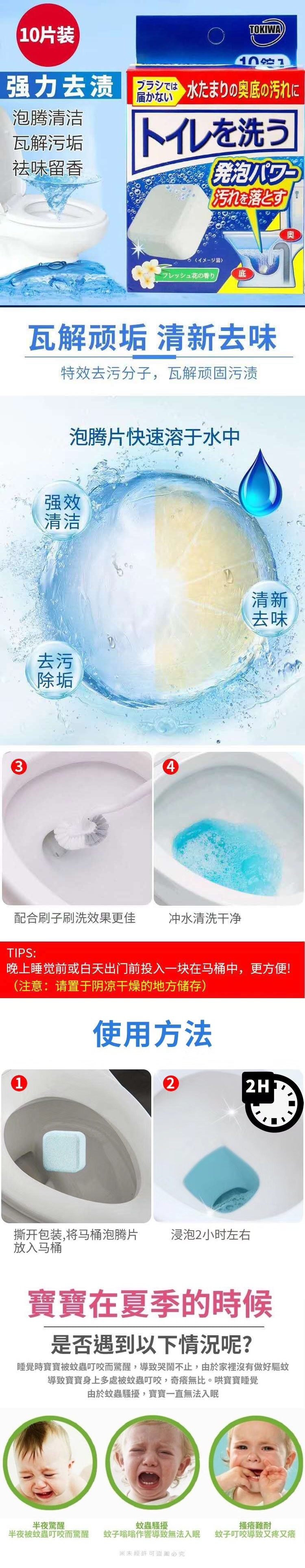 將一塊馬桶泡騰去污塊丟入馬桶中,