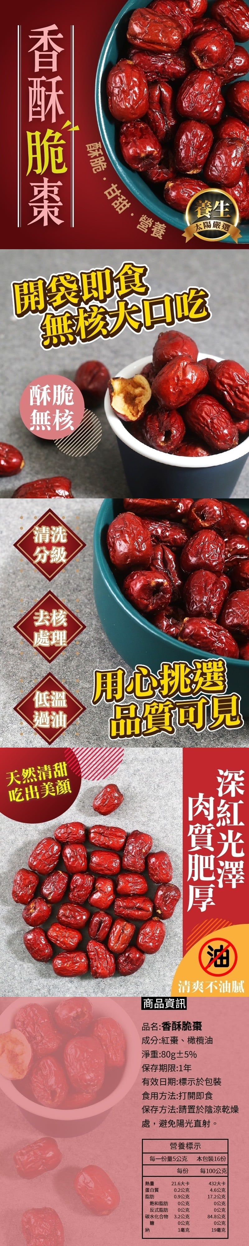 特選渾圓飽滿大顆紅棗、貼心去籽
