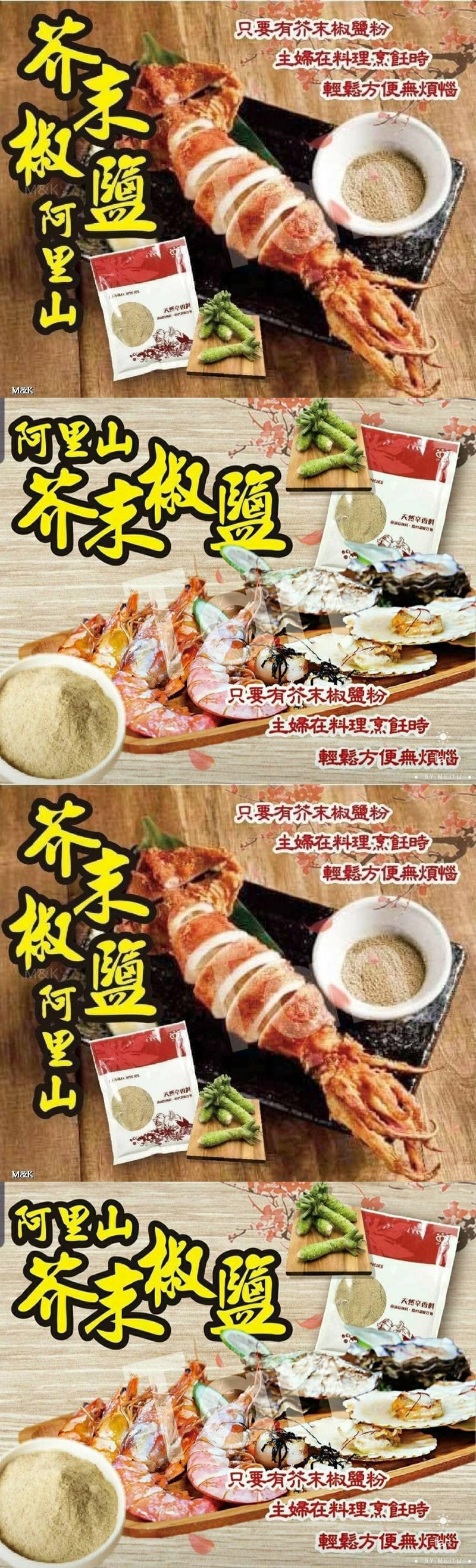 居酒屋燒烤店專用 超愛的阿里山秘製芥末椒鹽粉 千呼萬喚 老闆才願意推出 客人吃過都讚不絕口 居酒屋燒烤店最厲害的靈魂~ 秘製芥末椒鹽粉~ 無論是海鮮蝦子,透抽、烤魚、 筊白筍,杏胞菇、玉米筍等... 任何海鮮或菜沾上去都非常美味好吃哦~ 食物關鍵的靈魂 好吃的秘訣…就是這盤芥末椒鹽粉 嚴選阿里山芥末特製而成的椒鹽粉 口感不會死鹹、煮湯,炸物燒烤, 任何料理都很適合哦 買個幾包回去 主婦料理方便無煩惱!