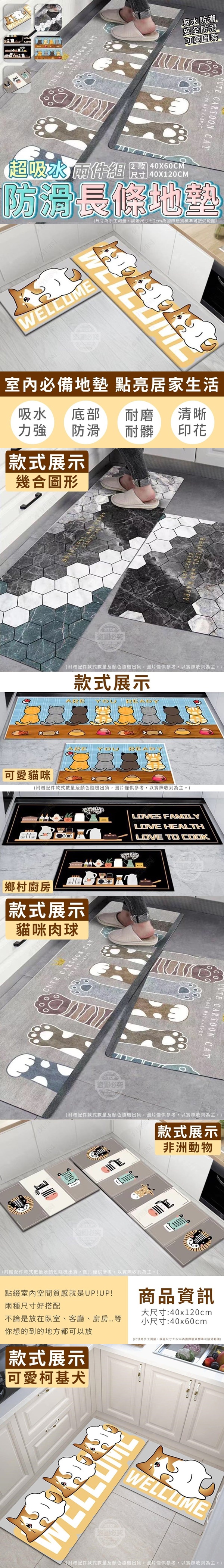 超吸水防滑長條地墊超值兩件組