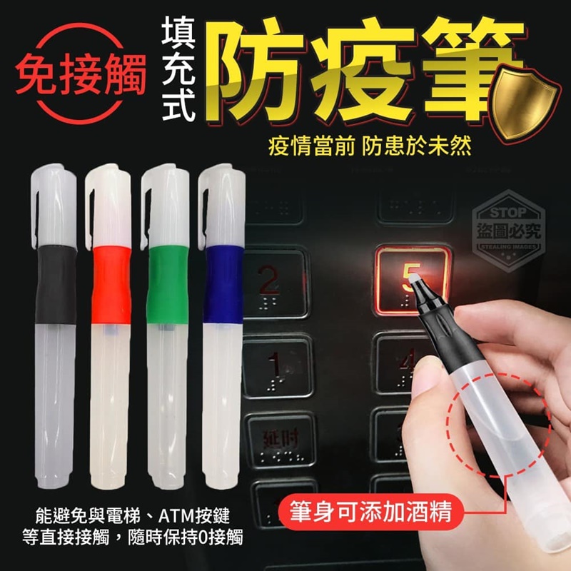 【商品顏色】黑色、紅色、綠色、藍色 (附贈配件款式數量及顏色隨機出貨, 圖片僅供參考,以實際收到為主。) 【商品說明】- 在疫情嚴峻的期間~ 按電梯、ATM按密碼、 按電燈開關、自助機點餐 小心這些動作容易有被接觸性感染的風險!! 疫情當前 防患於未然 ! 免接觸填充式防疫筆,筆身可添加酒精 不用直接接觸,取代你的小手! 防疫小能手 居家、上班、隨身帶, 大容量使用持久更方便 筆帽設計 可掛繩子或是插在口袋,攜帶方便 讓你0接觸,更安心!!