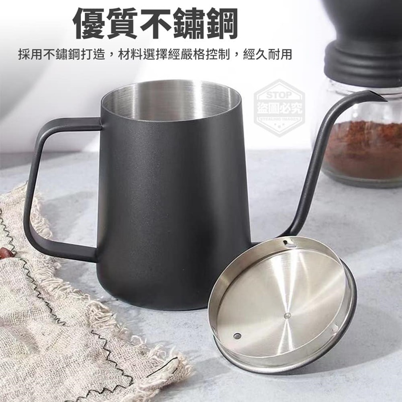 【商品材質】不鏽鋼 【商品顏色】黑色、銀色 (附贈配件款式數量及顏色隨機出貨, 圖片僅供參考,以實際收到為主。) 【商品說明】- 多用途不鏽鋼手沖咖啡壺,不鏽鋼打造 經久耐用,90度垂直水流, 傾倒方便,出水順暢, 優雅美觀不易外流、不易飛濺~ 細長壺口 細長注水壺口設計準確控管水流 帶蓋設計 帶提手壺蓋設計 提拿方便,美觀防塵 舒適手柄 加款厚實手柄設計 堅固好拿取 防滑底部 壺底平整穩固不易打滑 放置時不刮花桌面