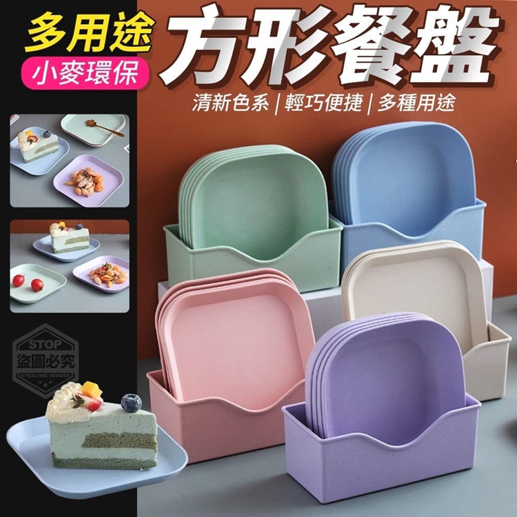 多用途小麥環保方形餐盤,造型