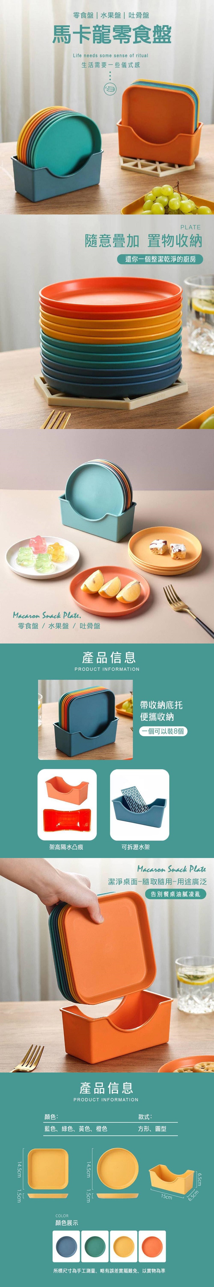 圓的方的任你挑 現在宅在家,這個超好用嗑瓜子, 吃零食,丟魚刺,吃水果... 通通都用的到 多種顏色,搭配好繽紛餐桌上任意擺放, 年輕有活力分享料理、 零食、甜點、一人一盤好方便 別忘了留一盤收集殘渣、果皮.骨頭, 保持餐桌整潔唷! 搭配底托不讓桌面亂糟糟 盤盤回家整齊好看、簡單好抽取 餐桌之外也能大有發揮 植栽底下放上一盤不怕澆水到處流! 高顏值適合各種裝修風格, 多種器型省心搭配 包裝 : 獨立opp袋裝 材質:PP 規格:混色8個裝+1底座 尺寸:如圖