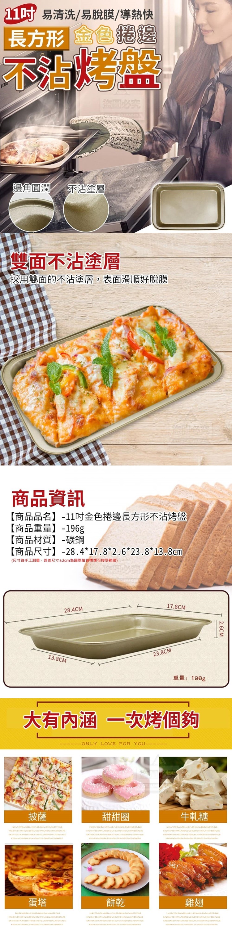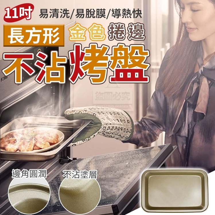 11吋金色捲邊長方形不沾烤盤,