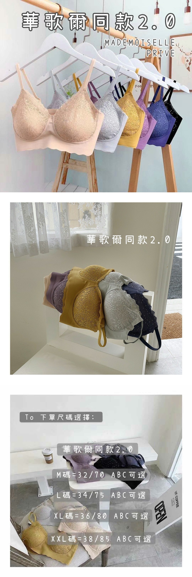 顏色 : 膚,灰,黃,紫,藍,黑 尺寸:M , L , XL , 2XL 滿天星無痕無鋼圈 雙肩無負重 W型承托,上托不下垂 穿過都說好穿 顏色多款可選 穿起來有型又舒適 性感加分 無鋼圈,自在無壓力 無痕,直接穿套不留痕跡 完美包覆,集中胸型 內襯墊柔軟舒適