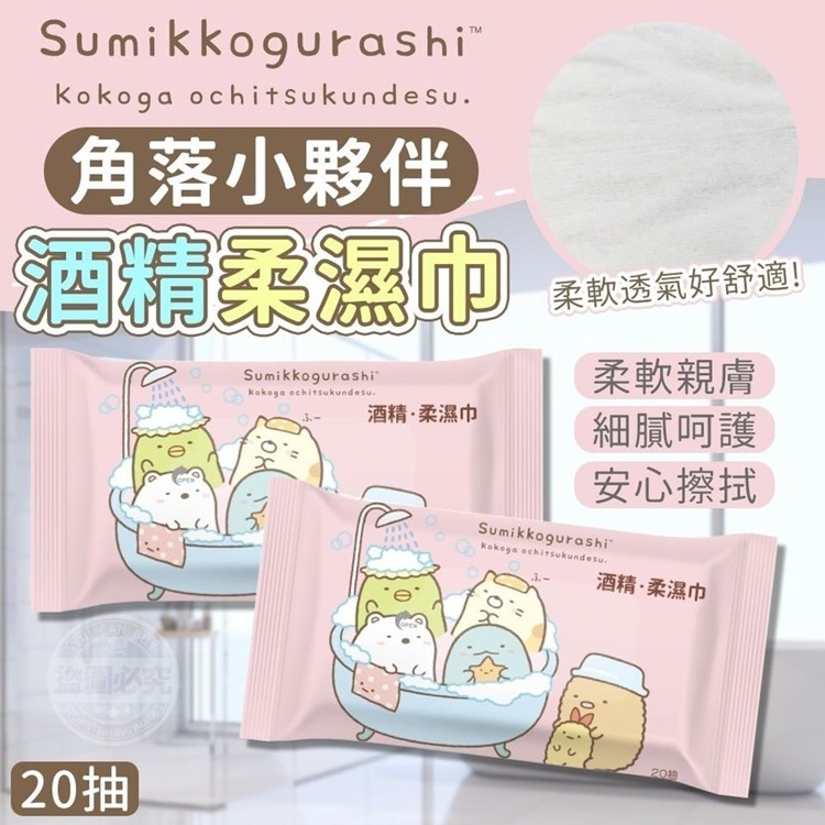 【商品說明】- 生活周遭細菌、病毒無所對在 所以日常清潔非常重要!!! 備好可愛的角落小夥伴酒精柔濕巾 隨時帶在身上超安心 小包裝,隨身好攜帶 居家消毒擦一下 在外清潔擦一下 工作場所清潔擦一下 不管在哪都能不受細菌的侵害 撕口開貼取出容易不污染 方便隨時取用且不怕 用不完的柔濕巾沾染灰塵 柔軟親膚,細膩呵護 不易掉屑,柔軟透氣擦拭舒適 日用清潔柔濕巾更是不能少 可拿來擦手、擦桌子、擦玩具、 擦馬桶等多種用途~ 角落小夥伴酒精柔濕巾20抽 絕對是您生活的好活伴 更是清潔的首選喔!