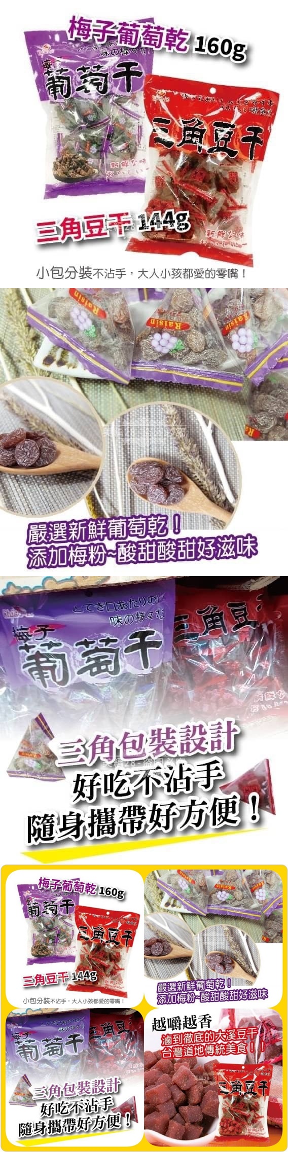 巧益梅子葡萄乾160g挑選優質新鲜的葡萄,加上甜而不腻梅子粉配上獨家秘方產品新鲜爽口的酸甜感满足您挑剔的味蕾,讓您一口接一口營養價值高,獨立小包裝,滿足一家人的需求,深受大眾喜爱,居家必備實品。