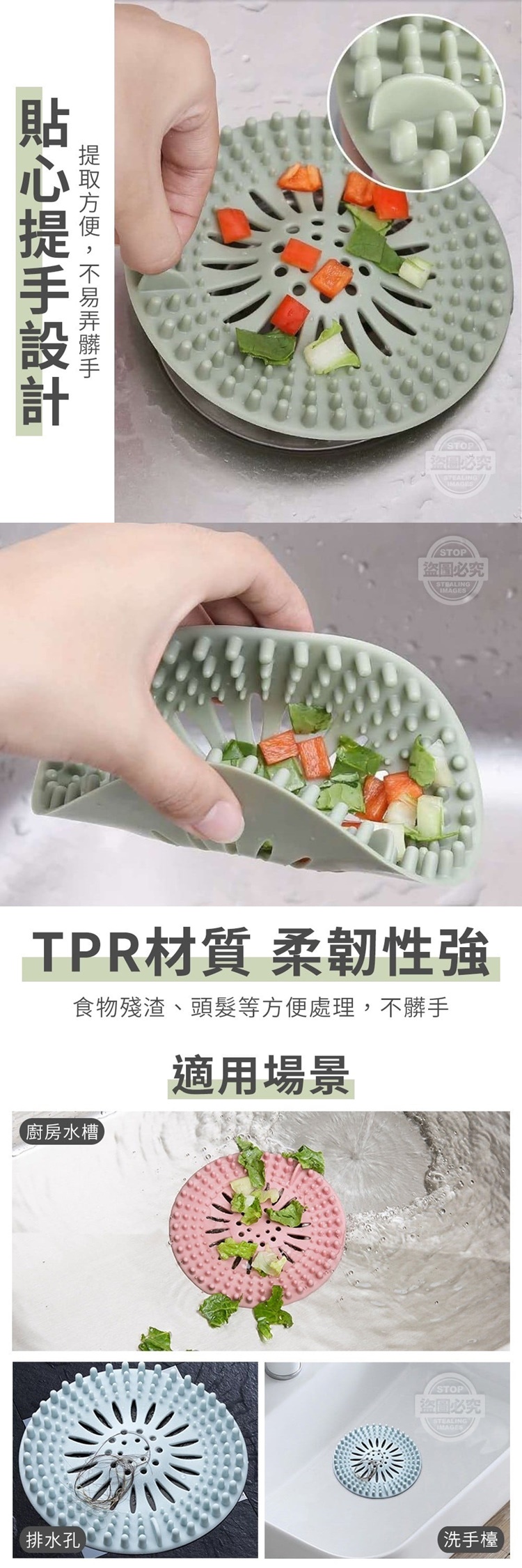 可有效阻擋頭髮、食物等各種殘渣喔!