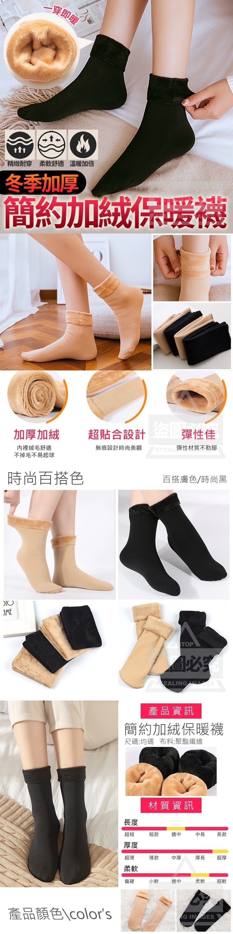 【商品材質】聚酯纖維 【商品尺寸】free size (尺寸為手工測量, 誤差尺寸±2cm為國際驗貨標準可接受範圍) 【商品說明】 保暖加絨加厚居家中筒襪, 整雙加絨加厚襪子,保暖度大升級! 出國穿上,再搭配防風防水的靴子, 下雪天也可以輕鬆應付! 且襪子可依喜好反摺, 不反摺可輕鬆自行搭配色彩 反摺的毛絨絨設計也超可愛, 一起來溫暖過冬!