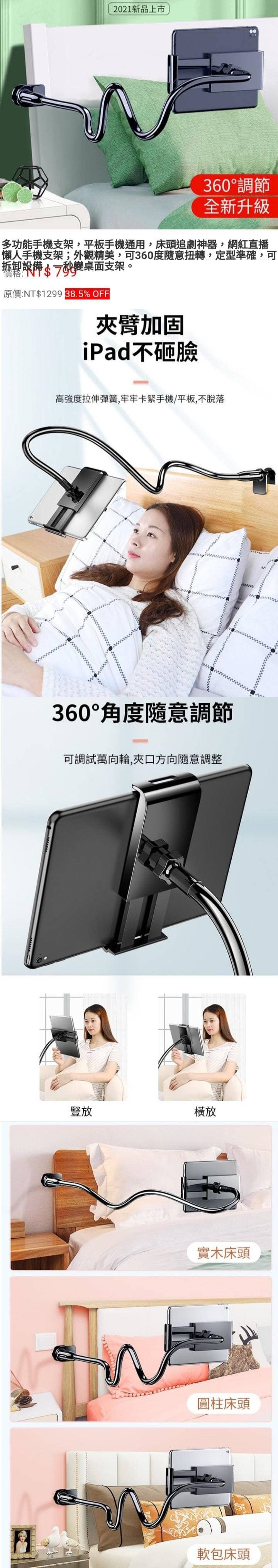 不知道你是不是也有這樣的困擾 躺床上追劇追著追著手滑被手機砸到臉的經驗 追劇追到捨不得進浴室洗澡 小編找了好久終於幫大家找到這款 上得了廳堂下得了廚房多功能手機支架 無論是要在廚房瀏覽菜譜資訊 或是在沙發在床上耍廢發呆追劇 還是要在浴室邊洗澡邊追劇 這款支架都可以瞬間解放你的雙手 一體設計,造型百變 橫放豎放都方便 材質 : 合金+ABS 顏色:簡約白、深空黑(隨機出貨) 規格:長度約88cm、opp袋裝 產品以實物為主