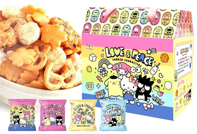 航空米果-翠果子 三麗鷗家族 X愛好和平公益米果禮盒12g X 20包/盒/還附贈貼紙]有什麼事情比愛與和平更重要!您購買的每一盒禮盒豆之家將捐助1包米果支持愛心家園的飯後零食時刻!!!光是包裝就浪漫動人