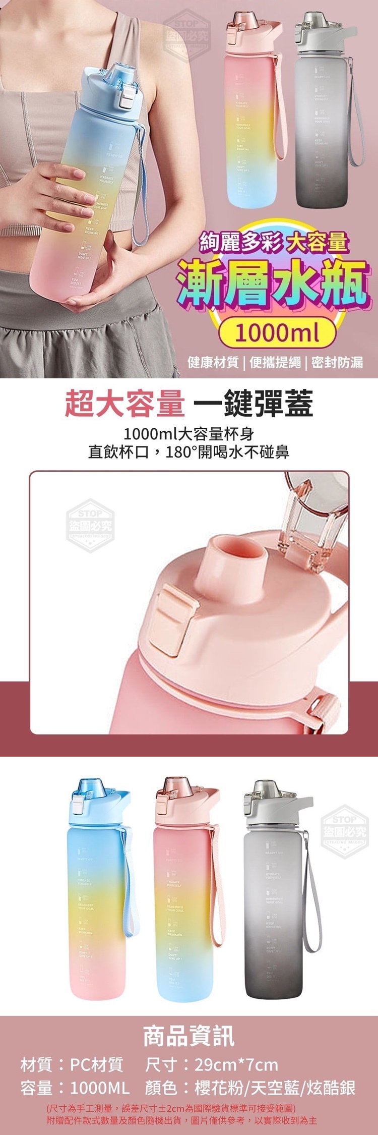 絢麗多彩大容量漸層水瓶1000ml