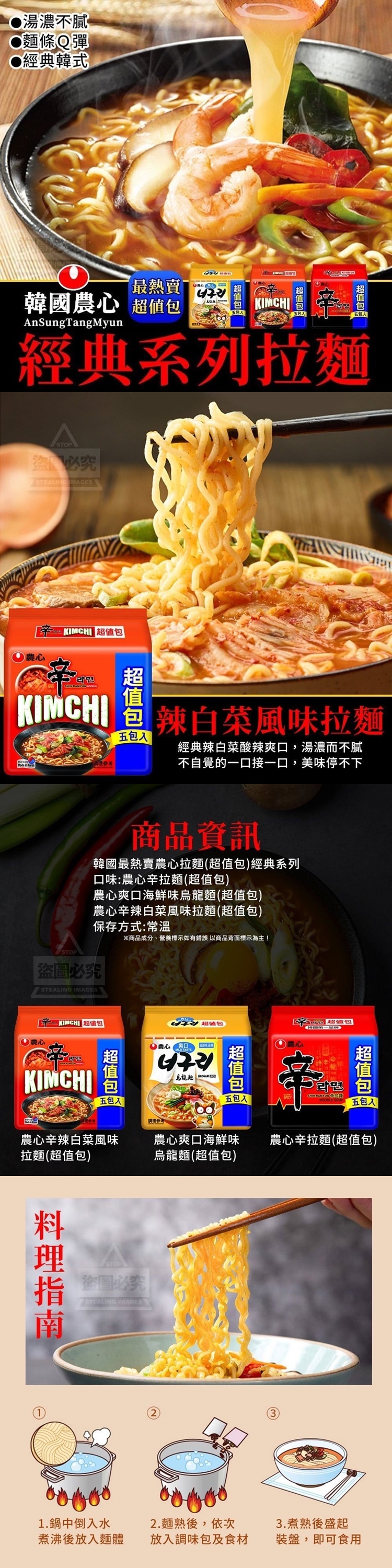 口味:農心辛拉麵(超值包)農心爽口海鮮味烏龍麵(超值包)農心辛辣白菜風味拉麵(超值包)保存方式:常溫【商品說明】-