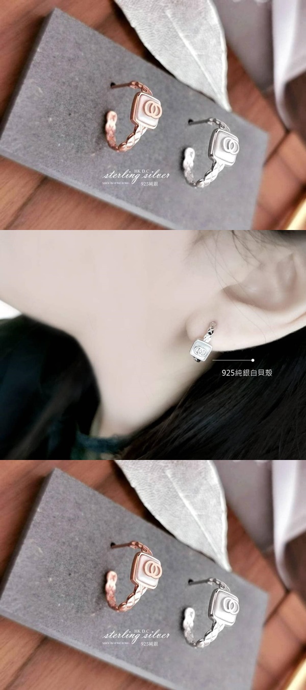厚版足銀實心,透出完美女人氣質的品牌標誌同款~香港H.K DC Sterling Silver <925純銀系列>H.KDC925純銀-<2021NEW名媛氣質>622小香同款優雅貝殼設計款耳環(玫,銀)百搭時尚,女人珠寶盒內的百搭經典款完美小香優雅感明星同款設計款典藏耳環for摯愛的完美時尚【小確幸,明星百搭款式,
