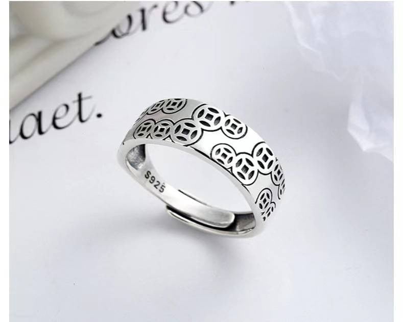 ㊣錢多多金錢招財吉祥復古做舊開口個性戒指