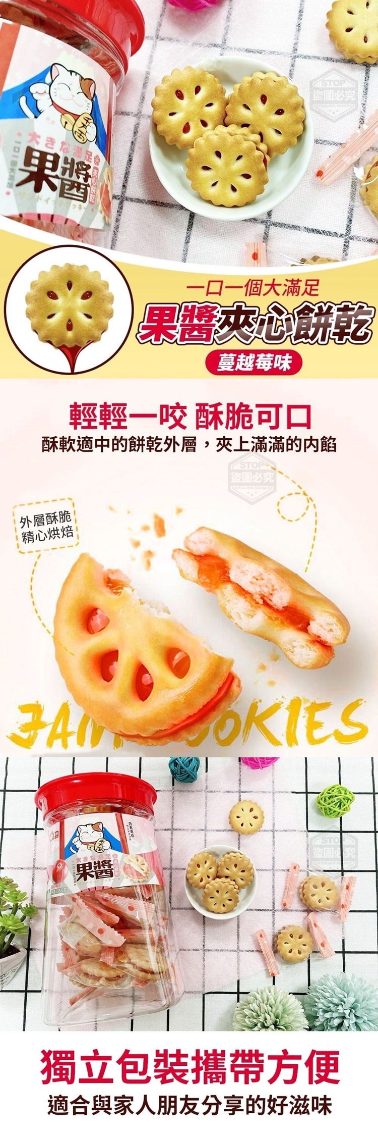【商品規格】- 重量:138g 產地:馬來西亞 有效期限:2022.05.14 保存方式:常溫 【商品說明】- 一口一個大滿足果醬夾心餅乾 濃郁蔓越莓夾心,酸甜可口~ 酥軟適中的餅乾外層 夾上滿滿的内餡 晶瑩剔透的Q軟夾心 嚼勁剛好不黏牙 吃起來微酸微甜的口感好開胃 蔓越莓夾心餅乾 酸甜可口,一口一個大滿足 輕輕一咬 酥脆可口 獨立包裝 分享樂趣 甜而不膩 不黏牙齒 適合全家大小 茶餘飯後 聊天必備小點 大人小孩都愛的解饞小零食~ 趕快手刀購入!!!