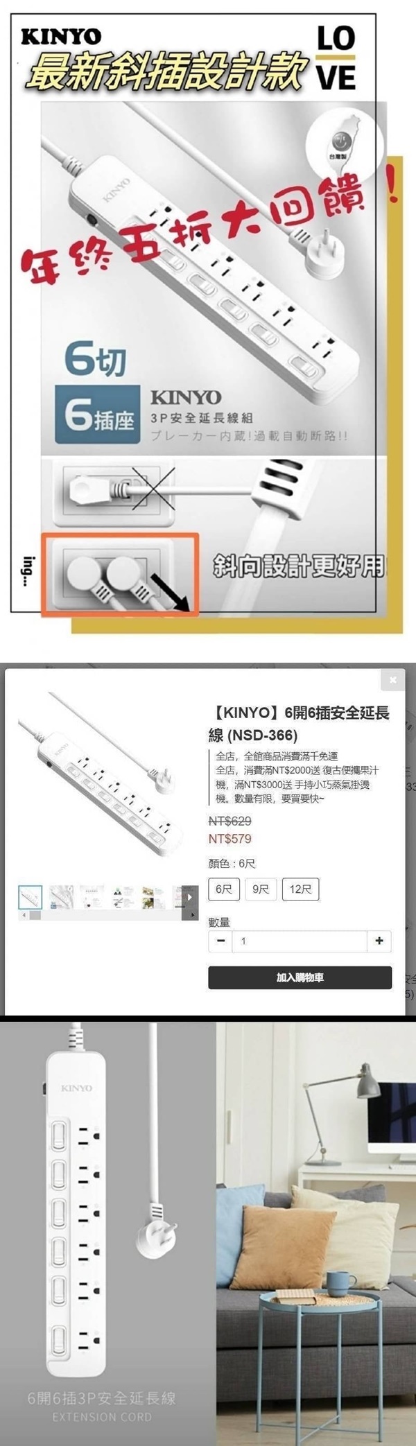 六開六插延長線